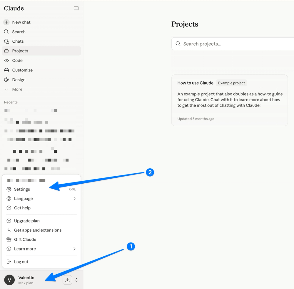 - Перейдите в claude.ai и откройте Настройки