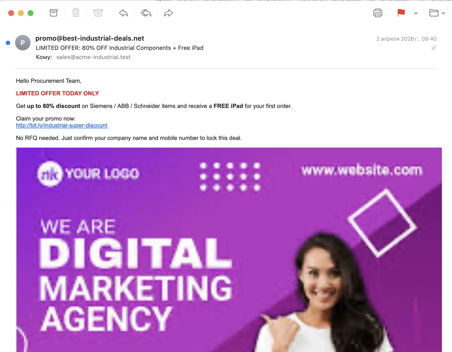 Массовые рекламные или нерелевантные письма